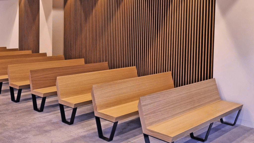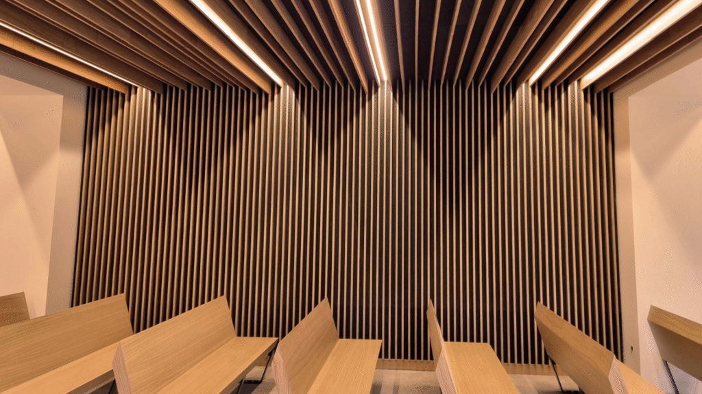 Estos paneles se fabrican con materiales de alta densidad y pueden incorporar acabados en madera o DM ranurado, que además de cumplir una función acústica aportan calidez y elegancia al entorno. Su instalación mejora la calidad del sonido y contribuye a un ambiente más agradable y equilibrado.